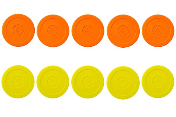 Zestaw 10 sztuk krążków fluorescencyjnych do cymbergaja o średnicy 70mm.