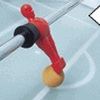 Figurki piłkarzyków wykonane ze specjalnego tworzywa (moplenu), odlane bezpośrednio na drążkach (nie są osłabione wkrętami), co sprawia, że nie przemieszczają się i nie pękają, niezależnie od tego jak silne jest uderzenie |