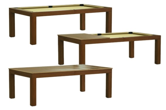 Stół bilardowo — konferencyjny Dinner to elegancki stół jadalniany, który w kilka chwil można zmienić w pełni funkcjonalny stół bilardowy. Zmiana funkcji jest prosta i nie wymaga siły fizycznej. Wystarczy ściągnąć 3 częściowy blat konferencyjny, który można schować w specjalnie zaprojektowanej składanej półce. Półka na blat jest składana tak, aby nie przeszkadzała użytkownikom, kiedy aktualnie część bilardowa nie będzie używana.